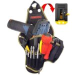 この腰袋は3段構造で、電動ドリルや工具を安全に収納可能。バネ式開閉で便利さアップ。防水オックスフォード布製で耐久性抜群。DIYや電気工事に最適な作業用ツールベルトです。