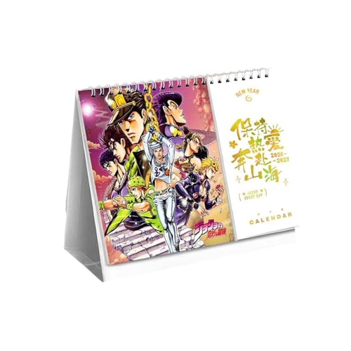 ジョジョの奇妙な冒険の2026年卓上カレンダー、両面プリント。空条承太郎、ブチャラティ、空条徐倫、ジョルノが登場。アニメファン必見の萌えグッズで、部屋飾りに最適。お正月やプレゼントにおすすめ。