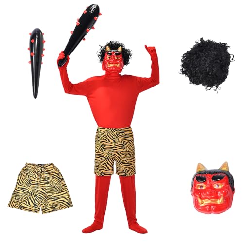 Ninayaxitaの節分鬼衣装は、赤鬼や青鬼の5点セット。鬼のお面や金棒付きで、豆まきや文化祭、イベントに最適。男女共用のコスプレで、楽しい仮装を楽しめます。