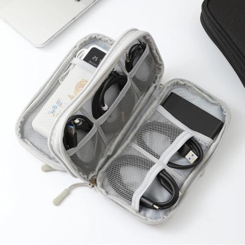 2層トラベルケーブルとアクセサリーバッグ。ポータブルで収納力抜群。ケーブル、USBデータケーブル、充電器、携帯電話、イヤホンなどをすっきり整理。(グレー)
