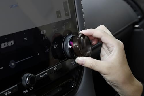 ruiya製のトヨタアルファード40系・ヴェルファイア40系専用エアコンダイヤルカバー。アルミ合金とガラス素材から製造され、内装をドレスアップするカスタムパーツ。耐久性があり、エアコンスイッチを保護しつつスタイリッシュに演出。