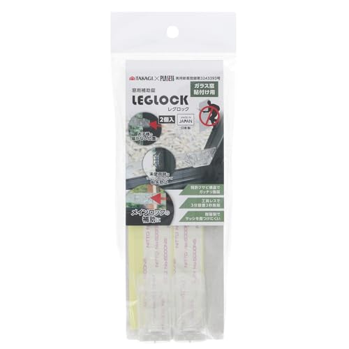 高儀の窓用補助錠LEGLOCKは、透明な樹脂製で、ガラス窓に貼り付けるタイプ。2個入で工具不要、日本製。侵入防止や防犯、災害対策、子供の安全にも配慮された設計です。