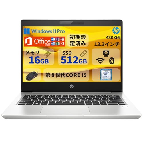 整備済みHPノートパソコン。15.6型ディスプレイ、第7世代Core i3、メモリ16GB、SSD512GB。Windows 11 Pro、MS Office 2019、USB 3.0、無線WIFI、HDMI、DVDドライブ、テンキー、Webカメラ搭載。