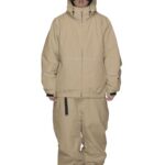 namelessage(ネームレスエイジ) スノボウェア スノーウェア 上下セット パイピングジャケット ワイドジブパンツ ベンチレーション付き メンズ レディース 耐水圧15,000mm NS-44 ブラック×Lベージュ Lサイズ スノーウェア スノーボードウェアの高価買取
