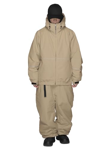 / namelessage(ネームレスエイジ) スノボウェア スノーウェア 上下セット パイピングジャケット ワイドジブパンツ ベンチレーション付き メンズ レディース 耐水圧15,000mm NS-44 ブラック×Lベージュ Lサイズ スノーウェア スノーボードウェア