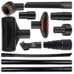 12個のユニバーサル掃除機アクセサリーセットは、ウェット&ドライ掃除機用のホースアダプターが含まれ、さまざまな清掃ニーズに対応します。
