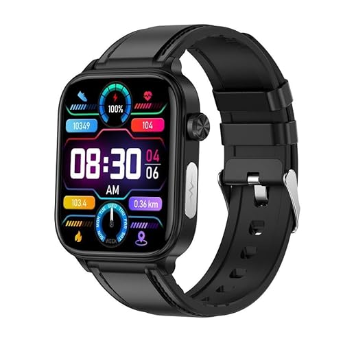 スマートウォッチはAndroid&iPhone対応。1.96インチ高精細画面、通話機能、着信&LINE通知。100以上の運動モード、活動量計、音楽制御、遠隔撮影機能。メンズ&レディース向け、ブラックレザー&ブラック・シリコンバンド付き。