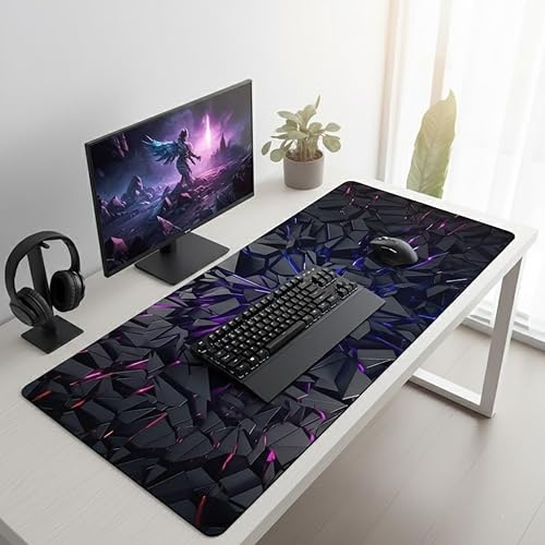 特大の未来的なゲーム用マウスパッド。鮮やかなネオンのブラックデスクマット、滑り止めラバーベース、ステッチエッジ。モダンなゲーマーにぴったりの装飾。
