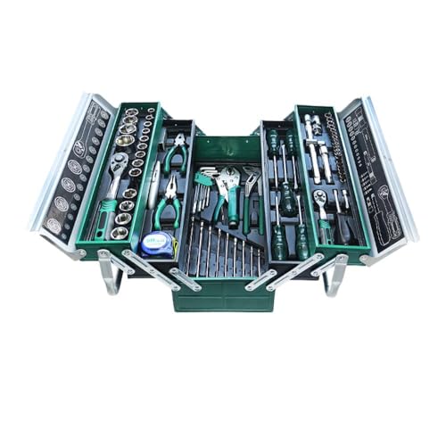 / YFFY 85点セット 工具セット クロムバナジウム鋼 ラチェットレンチ レイヤードデザイン 耐久性 美しく実用 多機能 DIY 自動車整備 農機修理 家庭用 (85ピース ツールキット 24歯,グリーン)