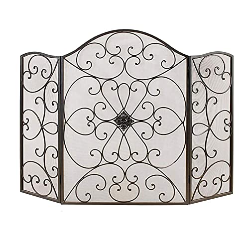暖炉スクリーン3パネルメッシュ。大きな黒い金属製デザインで、防火効果あり。屋内外で使える自立式スパークファイガード。サイズ66×30×90cm。