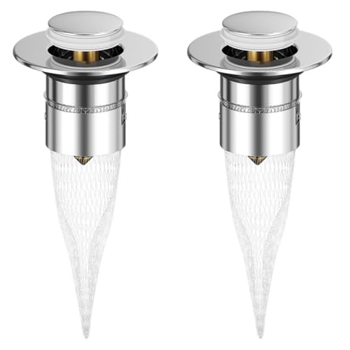 2個セットのステンレス製ヘアキャッチャー。35~53mmに対応し、洗面台や風呂の排水口に最適。240枚の水切りネット付きで、髪の毛詰まりや悪臭対策に効果的。簡単に脱着が可能です。