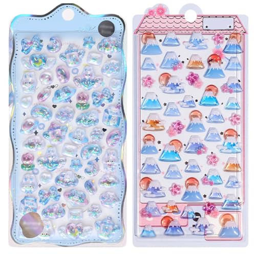 かわいい3Dぷくぷくステッカー2枚セット。レジン製でキラキラ、デコシールやDIYに最適。文化祭やパーティー、手帳や携帯電話の飾りにおすすめの装飾アイテムです。