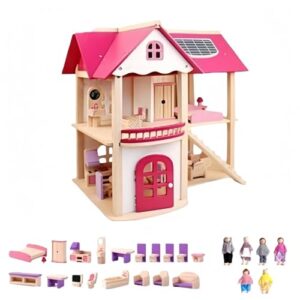 Pazeku 子供用、ままごと、おもちゃ、木製、シミュレーションヴィ、ごっこ遊び、DIY、想像力、ラドールハウス、おもちゃの家、セット、女の子、男の子、誕生日 (家具19点 + 6人家族 + 灯り) [並行輸入品]