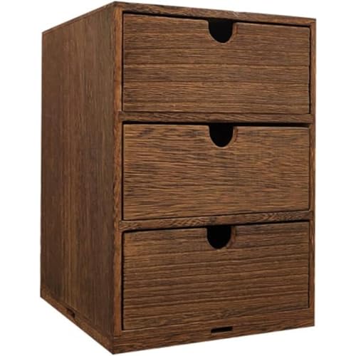 木製の3段ミニデスクトップ収納ボックス。引き出し式デザインで、多機能。化粧品、携帯電話、文房具やファックス機に最適。大容量で積み重ね可能。