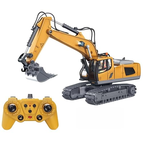 1:14スケールの合金製ショベルカーラジコン。2.4GHzリモコン搭載、360°旋回可能。ダブルゴムクローラーでリアルな操作体験。子供向け、誕生日やクリスマスプレゼントに最適な建設車両。
