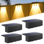 DODOGOD ソーラー屋外フェンスライトは、LED式で取付簡単。3つの光モード(暖かい白)、庭・階段・通路・バックヤードなどに最適な4個セット。