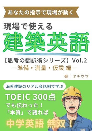 「現場で使える建築英語 思考の翻訳術 ーVol.2 準備・測量・仮設 編ー」は、建築現場で役立つ英語表現を集約した一冊。準備、測量、仮設に特化し、実践的な知識を提供。英語でのコミュニケーションをスムーズにするための必携ガイドです。
