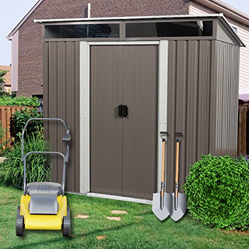 STPZHXCの屋外物置は、幅195cm、奥行150cm、高180cm。スチール製で、床材補強フレーム、引き戸両開きタイプ、換気口付き。防さび・防水設計で、ガーデニングや庭の収納に最適。