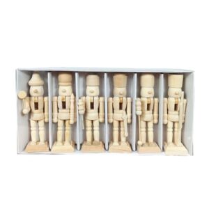 クリスマスくるみ割り人形デコレーション – 6個の未塗装木製卓上彫刻、お祝いのコレクション用くるみ割り人形フィギュア、リビングルーム、暖炉、玄関、寝室、子供部屋、バスルーム用