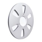 アルミ製6穴リール、直径10.5インチで空のテープとハブディスクを収納可能。スタジオ機器の整理に最適なボックスパッケージ。
