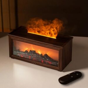 Jopsavm ミニストーブトップディフューザー 暖炉スタイル アロマオイル対応 炎ファッション加湿器 7色LED搭載 3段階調節タイマー 乾燥防止自動オフ 大容量 Type-C電源 リモコン付き (ダークウッドグレイン)
