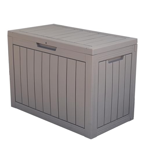 屋外収納庫170Lホワイトは防水・耐候性に優れたポリプロピレン製で、鍵穴付き。ベランダや庭で多用途に利用可能。木目調デザインでスタイリッシュで頑丈。