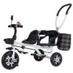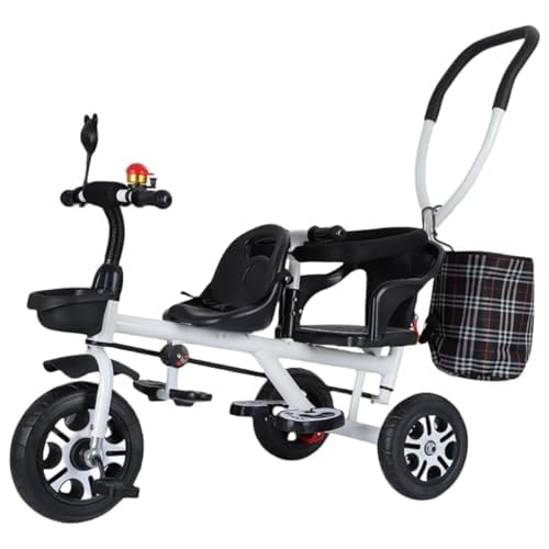 Qobvoehの三輪車は二人乗りで、8ヶ月から7歳まで使用可能。二点式安全ベルト、収納カゴ、取り外し可能な補助バー付き。誕生日プレゼントとしても最適で、屋内外で楽しめる乗用玩具です。