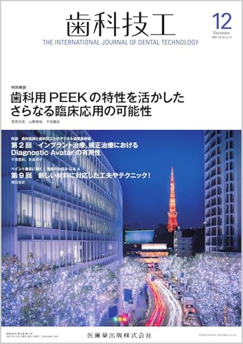 2025年12月号の53巻12号では、歯科技工における歯科用PEEKの特性を活かし、臨床応用の可能性を探ります。PEEKは耐久性や生体適合性に優れ、インプラントや義歯などへの応用が期待される内容です。
