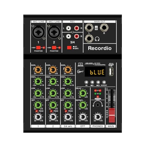 [Wsikafxn] A4 プロフェッショナル ポータブル デジタル DJ コンソール USB ミキサー ボーダー付き ライブ歌唱 4 チャンネル ブラック 1 個の製品情報