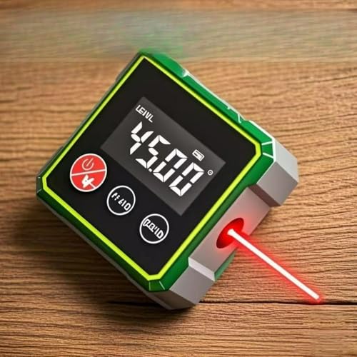 磁気デジタル角度ファインダー。LCDディスプレイ、電子レーザー、デュアルレーザーで精密測定。自動シャットオフ機能付き。木工測定に最適。