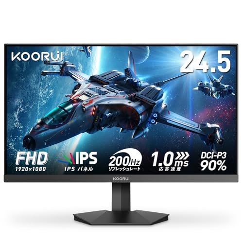 KOORUI G2511Pは24.5インチのIPSゲーミングモニターで、200Hzのリフレッシュレートと1msの応答速度を実現。HDR400対応、非光沢のフルHDパネル、90% DCI-P3色域でゲームに最適。HDMI、DisplayPort、Adaptive Sync、VESAマウント対応。