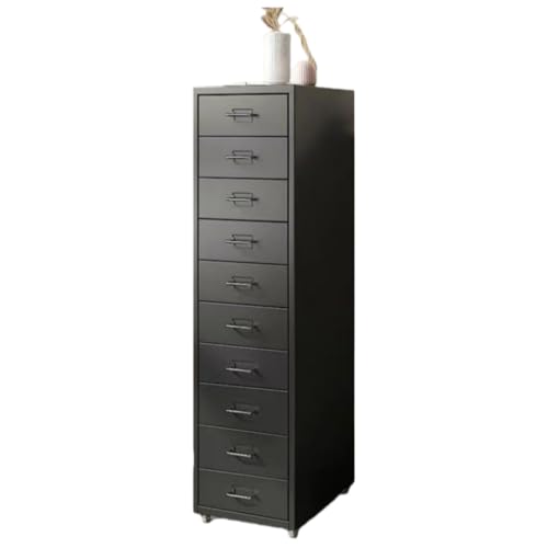 MAKETOMONEY デスクワゴン キャビネット 書類ケース 縦型ファイルキャビネット 扉付き本棚 引き出し 袖机 机下収納 キャスター付き スチール製 事務用品 書類整理箱 雑貨収納 オフィス家具 学校 業務用 寝室 取り付け簡単 移動便利 大容量 (10層,ブラック)の製品情報