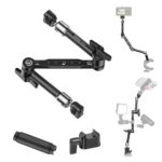 Ulanzi 43cmマジックアームは耐荷重4.5KG、三段式で両面多ポートNATOレールを搭載。360度/90度調整可能で、1/4″・3/8″ネジ穴対応。ARRI用デュアルボールヘッドで安定性抜群。カメラやスマホホルダーに最適。