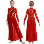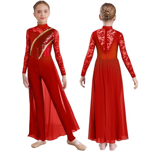 子供向けのガールズ体操&フィギュアスケート用レオタード。フローラルレース付きのスカートが魅力的なデザイン。ジャンプスーツスタイルで動きやすく、ブルゴーニュカラーが素敵。対象年齢は15-16歳。