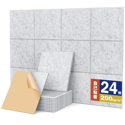 YOPINの自己粘着吸音ボードは、高密度200kg/m³で防音効果抜群。サイズ30*30cm、24枚セットで簡単設置。難燃性、防湿、保温も備え、DIYにも最適。賃貸でも剥がせるデザイン。