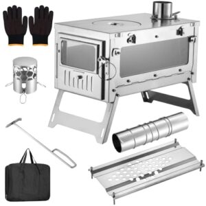 Vifxucyキャンプアウトドアストーブ 、温暖化ストーブ ヒーター ミニカセット ステンレス製 多機能 暖炉 、冬用暖房器具 小型軽量 防寒 収納袋付き (グリーン)の高価買取