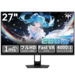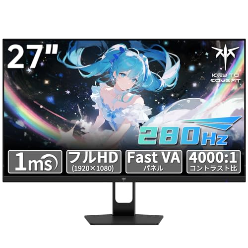 KEY TO COMBAT 27インチ280Hz 1ms応答速度、FHD(1920×1080)ゲーミングモニター。4000:1コントラスト比、HDR10、sRGB126%色域。Adaptive Sync、HDMI2.0×2、DP1.4×1、USB2.0、VESA対応。