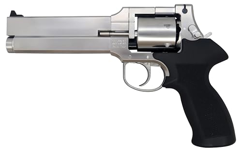 マルシン工業のマテバ6インチは、シルバーABSボディとブラックラバーコートのプラグリップを搭載。18歳以上向けのガスリボルバーで、新型パッキンとXカートリッジを採用。モデル番号は122504です。