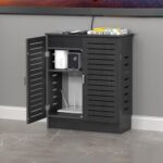 BLINGOODの収納キャビネットは、PVC製で配線を隠せる設計。スリムラックはモデムやWi-Fiルーターを収納可能。防炎・耐湿性に優れた扉付きで、シンプルなグレー色。サイズは50*25*70cm。