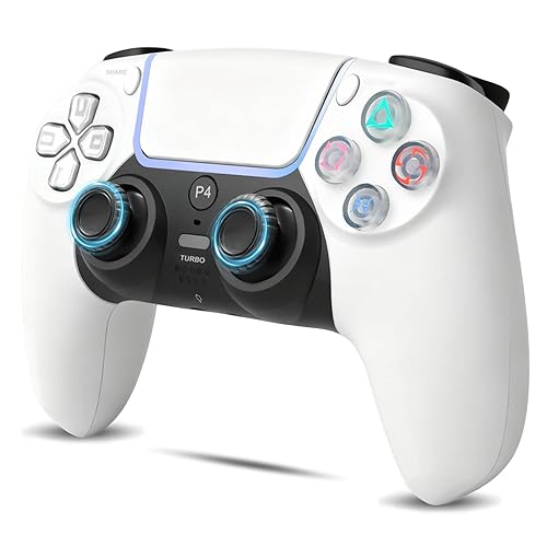 PS4コントローラー2025年版。ドリフト防止ジョイスティック搭載、無線/有線接続、Turbo機能、6軸ジャイロ、振動機能、エルゴデザイン、高耐久ボタン、タッチパッド、イヤホンジャック付き。P3/P4/P4 Pro/PC対応。