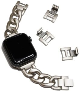 [Royce&Roland] 互換品/代替品 チェーンバンド おしゃれ 時計 バンド (ステンレス/シルバー) 工具不要/メンズ レディース ギフト プレゼント applewatch アップルウォッチ (40mm 41mm 42mm, スターライト)