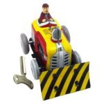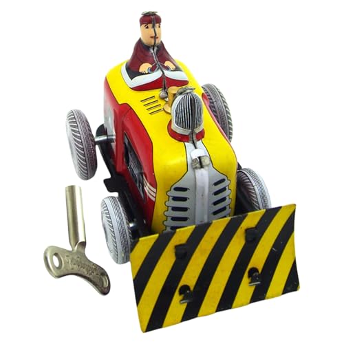 鉄製のワインドアッププッシュドーザーおもちゃ。ヴィンテージのデザインで、テーブルディスプレイに最適。大人向けのエンターテイメントやノスタルジックな家の装飾、コレクターアイテムにおすすめです。