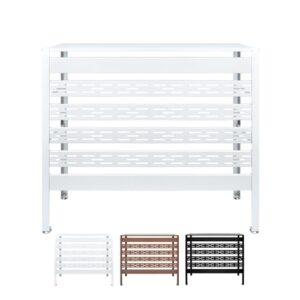 エアコン室外機カバー 本体+架台セット ホワイト 丈夫なスチール製 耐荷重20kg 日本製 省エネ 節電効果 日よけ 遮熱 雪よけ 積雪 大雪 転倒防止チェーン付き アンカー用プレート付き MKY-950Ⅱ 高価買取中