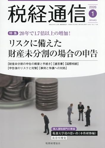 税経通信2026年1月号では、過去20年で約1.7倍に増加した財産未分割時の申告について解説。リスクへの備えを考えた適切な申告方法を紹介しています。