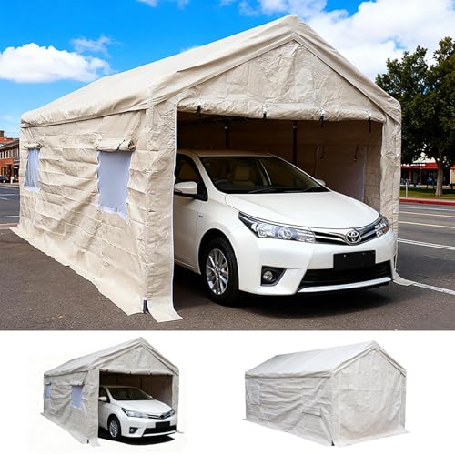 大型車庫テント(間口3×高さ6×奥行2.79m)は、UVカット・防水機能を備えたスチール製の頑丈な簡易倉庫。上がきドアで便利なバイクガレージや軽自動車用として最適です。