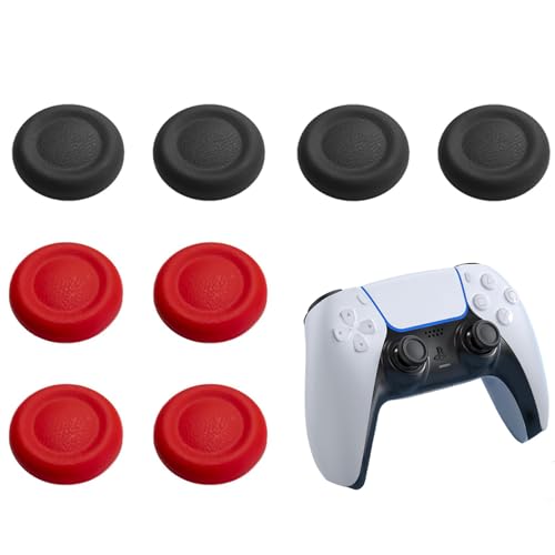 FUYUERO PS5コントローラー用交換スティックキャップ。ホコリ防滑・防塵で、取り付け簡単。快適なグリップを提供し、PS4/PS5両対応の赤と黒の8個セットです。