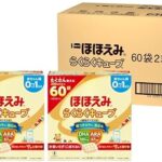 ほほえみらくらくキューブは、3240g(27g×120袋)で、0ヵ月から1歳頃の赤ちゃん向けの固形タイプの粉ミルクです。手軽に使えるキューブ型で、栄養がバランスよく配合されています。