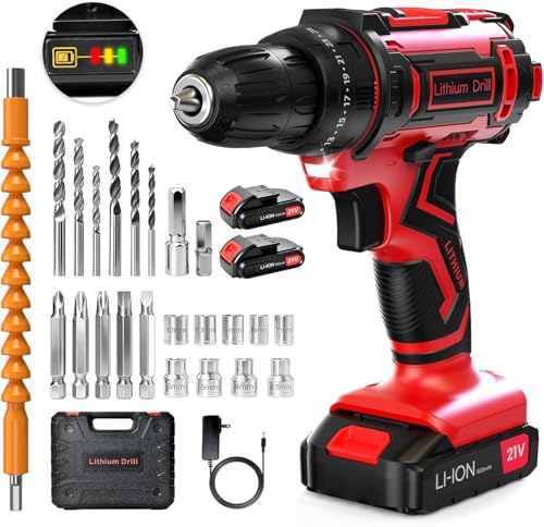 電動ドライバー 21vは、1500mAhバッテリー2個付き。25+1段階トルク調節、LEDライト、無段階変速、最大42N.mのパワーを実現。二段階スピード調節、正逆転切替が可能で、DIY家具や木材・金属の穴あけ・締付けに最適。日本語取扱説明書付き。