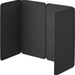 マグネット式レンジガード、ブラック4枚パネル。各パネルはW18×D0.7×H32cmで食洗機対応。1枚ずつ取り外し可能、油はねを防ぐTower製品1457。