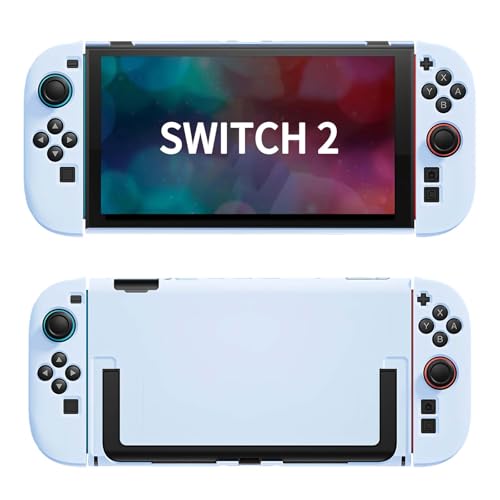 PhyiFlbey Switch 2 ケースは、2025年モデルに対応したスイッチ2カバーです。取り外し可能な設計とスタンド付き、全方向から保護し、耐衝撃性や傷防止、滑り止め機能を備えています。青色で防塵効果もあり、周辺機器と互換性があります。